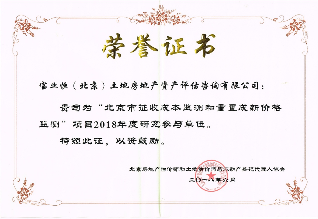 • “北京市征收成本監(jiān)測和重置成新價格監(jiān)測”項目