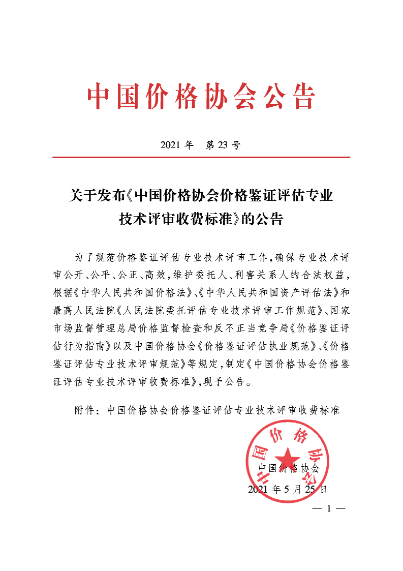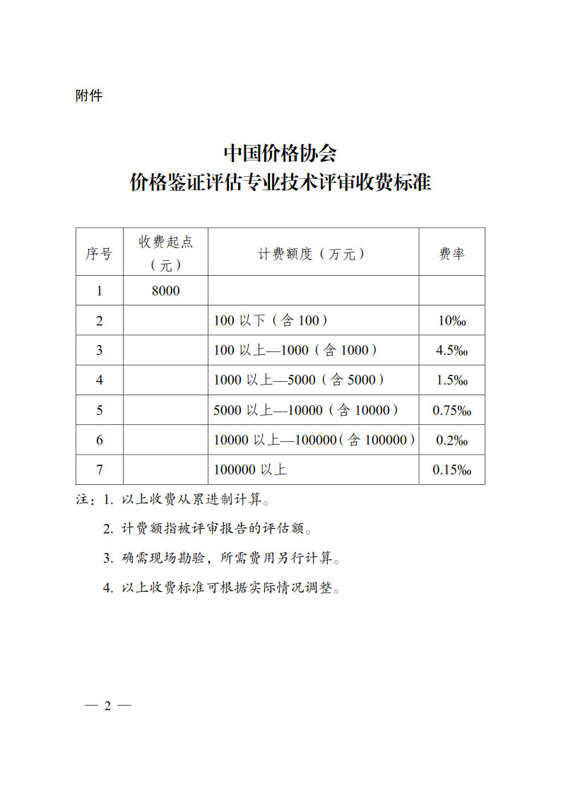 附件:中國價格協(xié)會價格鑒證評估專業(yè)技術(shù)評審收費標(biāo)準(zhǔn)