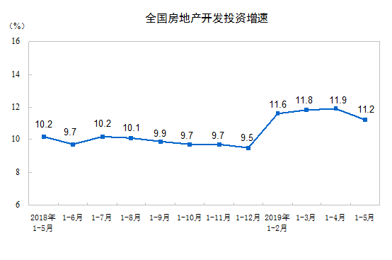 2019年1—5月份,全國房地產(chǎn)開發(fā)投資46075億元,同比增長11.2%,增速比1—4月份回落0.7個百分點。其中,住宅投資33780億元,增長16.3%,增速回落0.5個百分點。住宅投資占房地產(chǎn)開發(fā)投資的比重為73.3%。