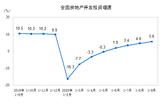 1—9月份,全國房地產(chǎn)開發(fā)投資103484億元,同比增長5.6%,增速比1—8月份提高1.0個百分點。其中,住宅投資76562億元,增長6.1%,增速提高0.8個百分點。
