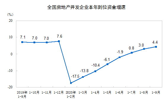 1—9月份,房地產(chǎn)開發(fā)企業(yè)到位資金136376億元,同比增長4.4%,增速比1—8月份提高1.4個百分點。其中,國內(nèi)貸款20484億元,增長4.0%;利用外資94億元,下降9.5%;自籌資金44485億元,增長5.9%;定金及預(yù)收款45145億元,增長2.9%;個人按揭貸款21783億元,增長9.5%。