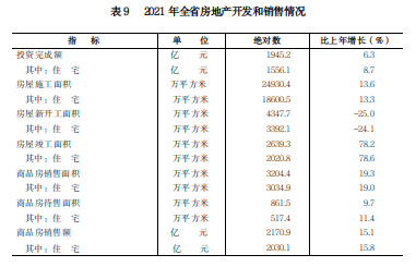 全年全省房地產(chǎn)開發(fā)投資1945.2億元,增長6.3%。其中,住宅投資1556.1億元,增長8.7%;商業(yè)營業(yè)用房投資147.8億元,下降0.5%。
