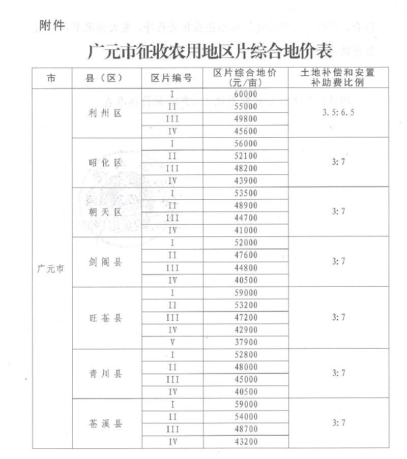 附件:廣元市征收農(nóng)用地區(qū)片綜合地價(jià)標(biāo)準(zhǔn)表